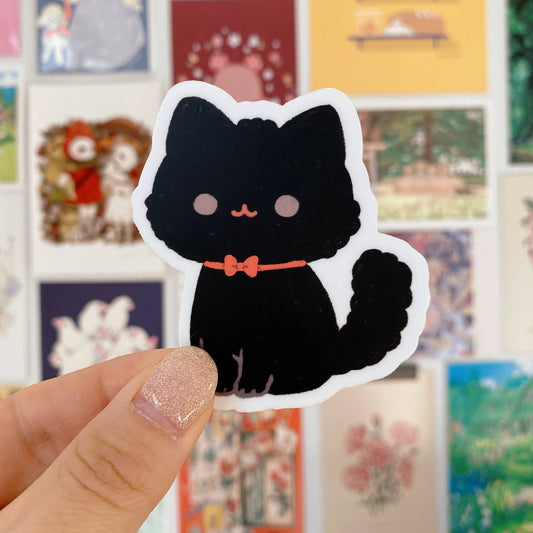 Cherry Rabbit Vinyl Die Cut Sticker - Black Cat