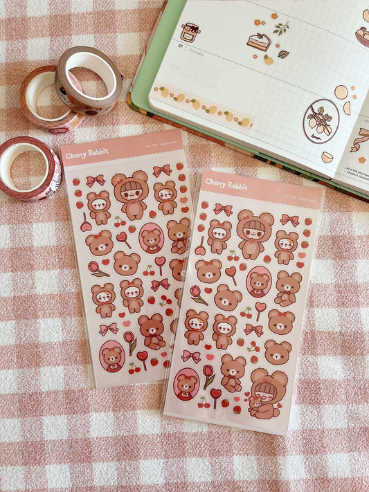Cherry Rabbit Sticker Sheet - Teddy Bear #109
